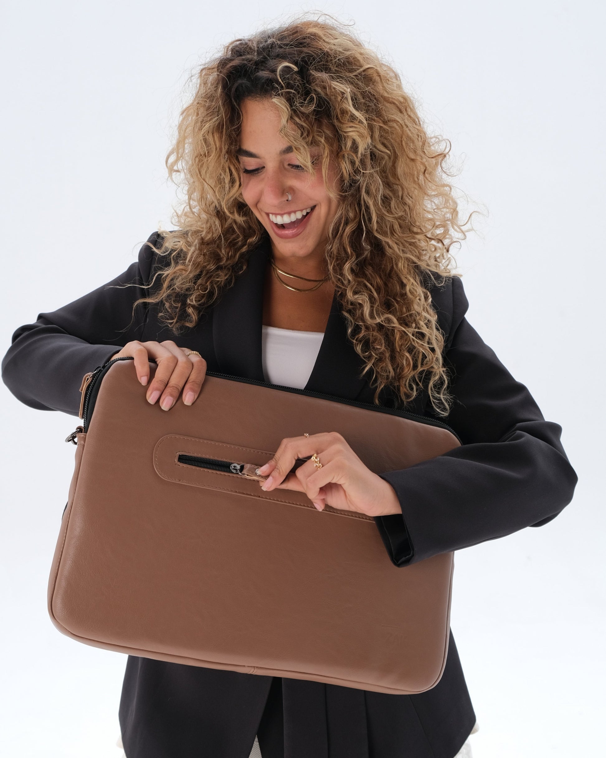 Leather Laptop Bag - Latte